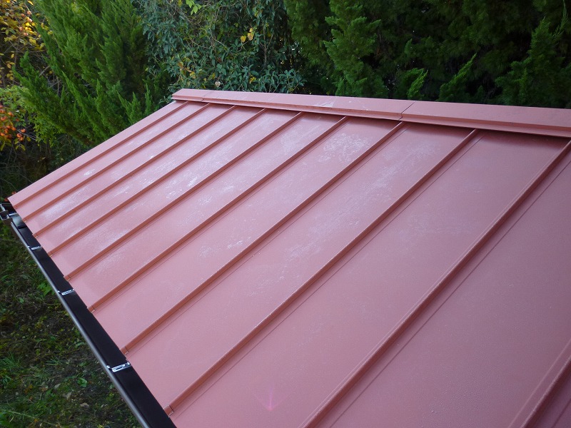 既存シングル屋根の上から、立平葺きでカバー工法です。